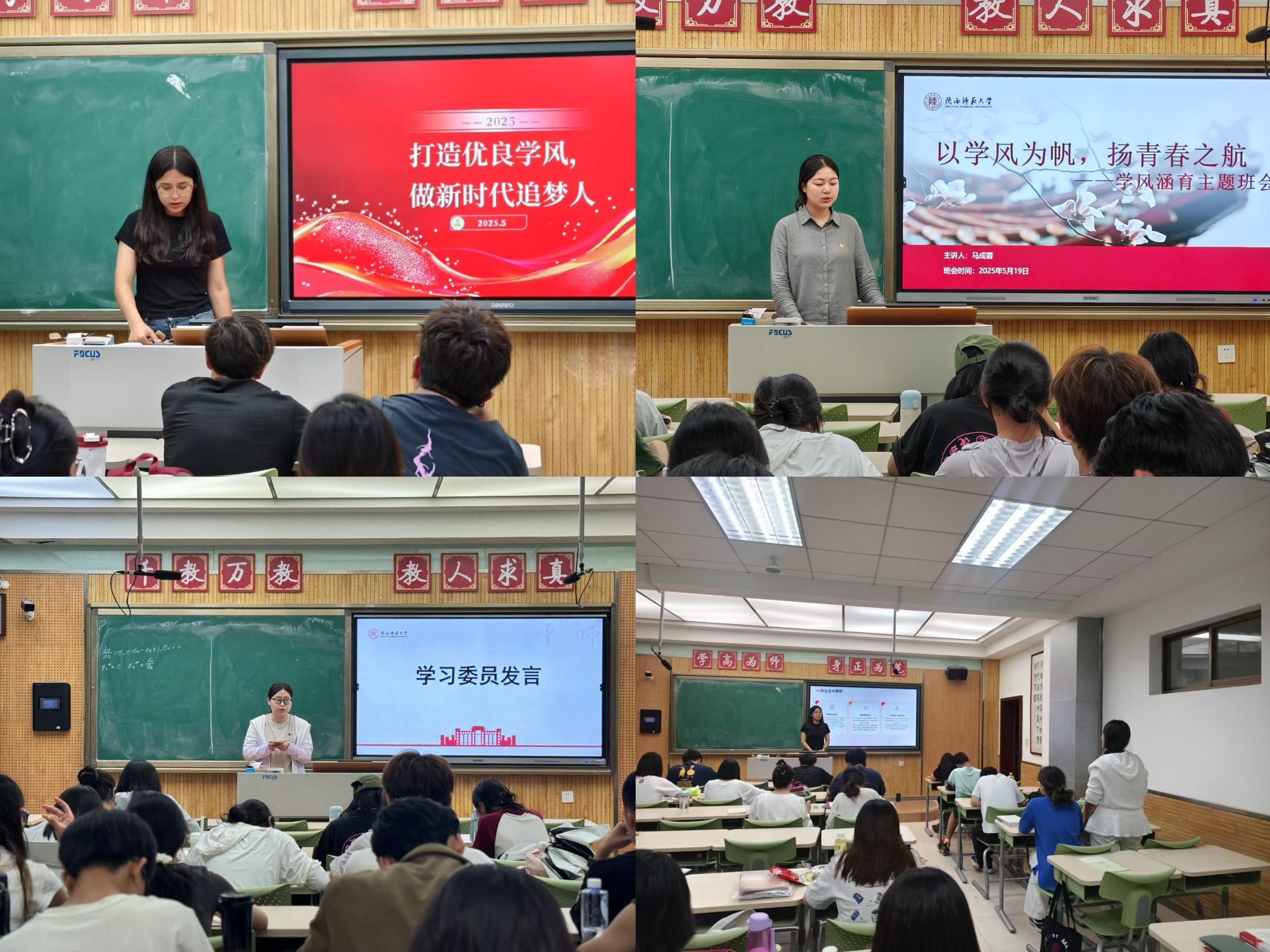 组织了各班级召开了以“学风建设”为主题的班会。班会上,班主任和辅导员向学生们介绍了学风建设的重要性和紧迫性,鼓励学生们树立正确的学习态度和目标,培养良好的学习习惯和方法。同时,学生们也纷纷发言,表达了自己对学风建设的看法和建议,以及自己在学习中遇到的问题和困难。