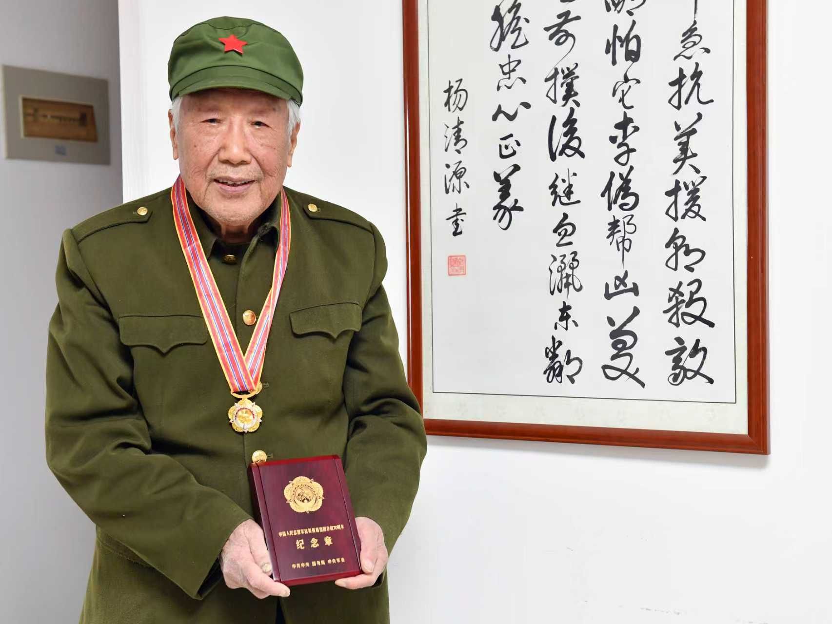 陕西师范大学参加抗美援朝的老战士、退休教师杨清源是纪念章获得者之一。那天,杨清源身着笔挺的军装,坐在家中收看电视直播。在总书记的讲话结束后,他反复端详着胸前的“中国人民志愿军抗美援朝出国作战70周年”纪念章,对前来采访的记者说:“能够获得这枚具有特殊纪念意义的奖章,我心里很是激动。聆听了习近平总书记的讲话,与会场的老同志们一起唱国歌、一起鼓掌,内心感到无比的骄傲和光荣。奖章戴在身上,党对老同志的嘱托永远记在心上,我们一定不忘初心、牢记使命,忠诚奉献一辈子。”送走记者,他的思绪回到当年……